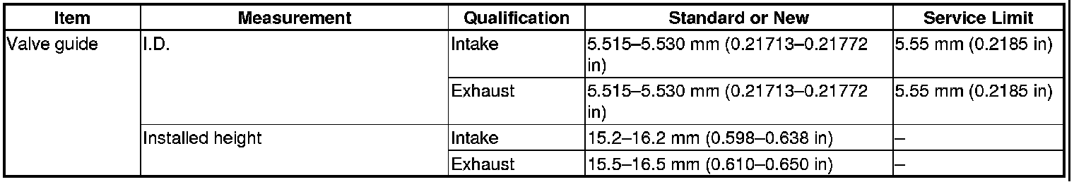 Valve Guide Specification(s)