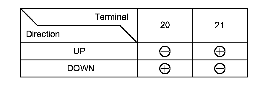 2. Test the motor in each direction by connecting battery power and ground to the power window master switch 22P connector according to the table.