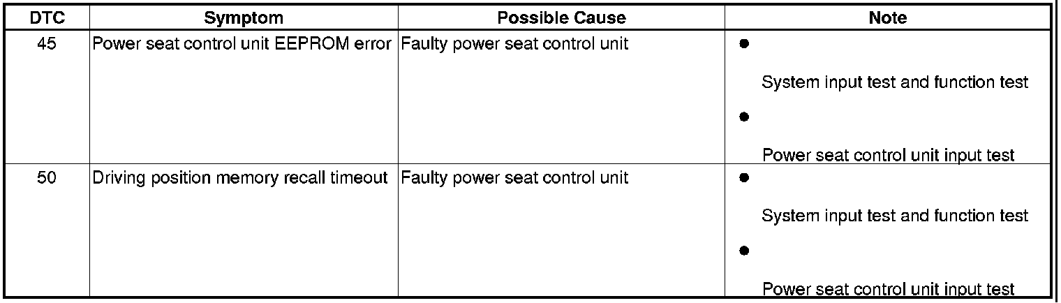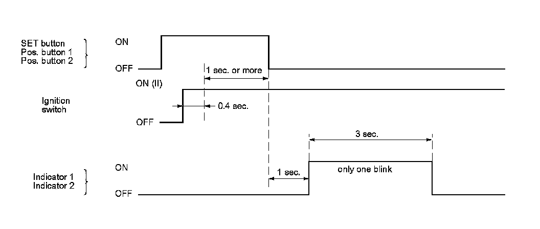 The self-diagnostic function of the driving position memory system detects system problems. If a system problem is detected, the buzzer built into the power seat control unit sounds for 5 seconds. This information can be retrieved through the driving position memory switch indicators.