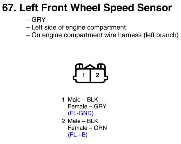 View 67 - Left Front Wheel Speed Sensor Connector View