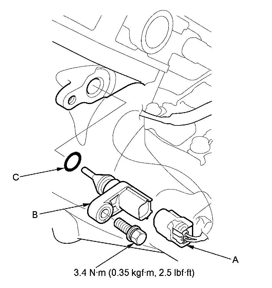 4. Install the parts in the reverse order of removal with a new O-ring (C).