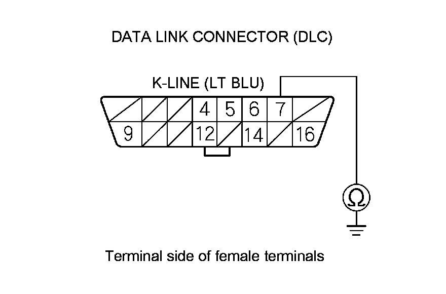 19. Check for continuity between DLC terminal No. 7 and body ground.