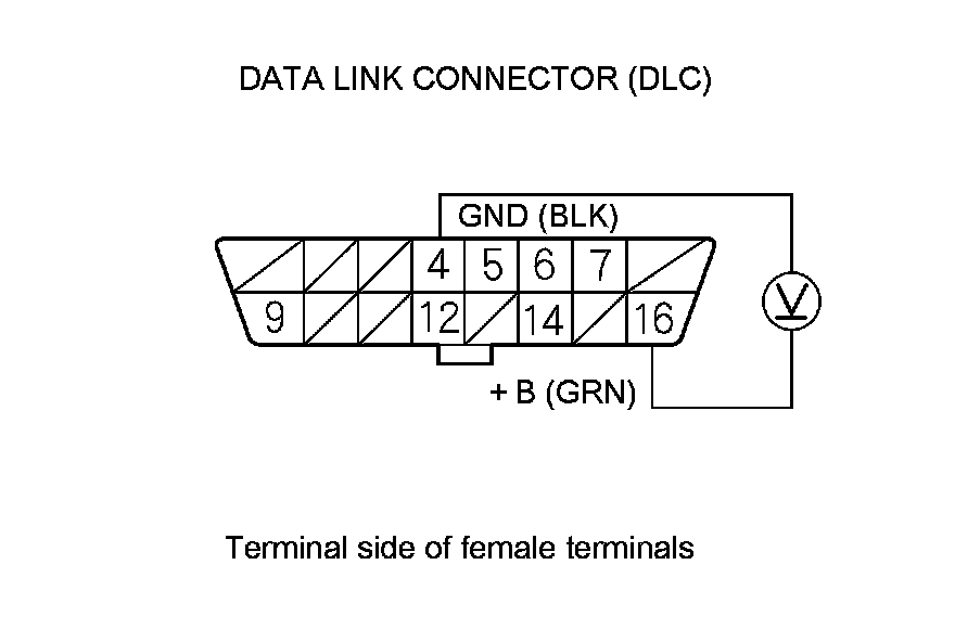 26. Measure the voltage between DLC terminal No. 16 and body ground.