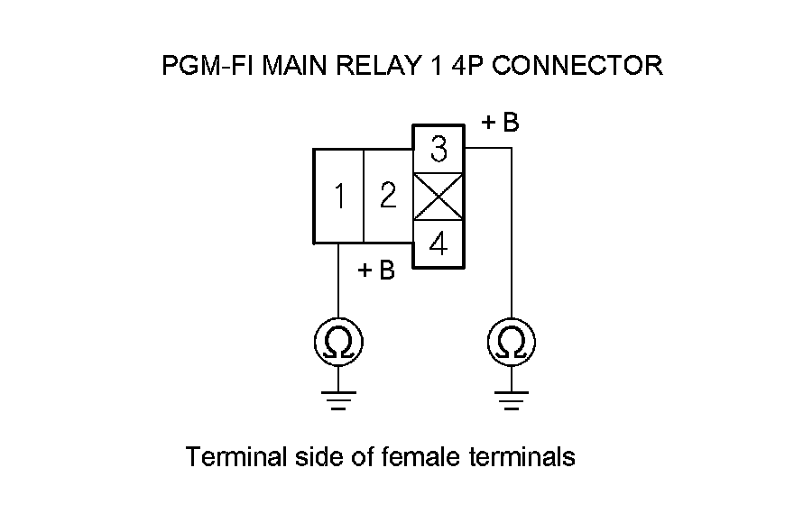 41. While disconnecting each of the parts or connectors below, one at a time, check for continuity between PGM-FI main relay 1 4P connector terminal No. 2 and body ground.