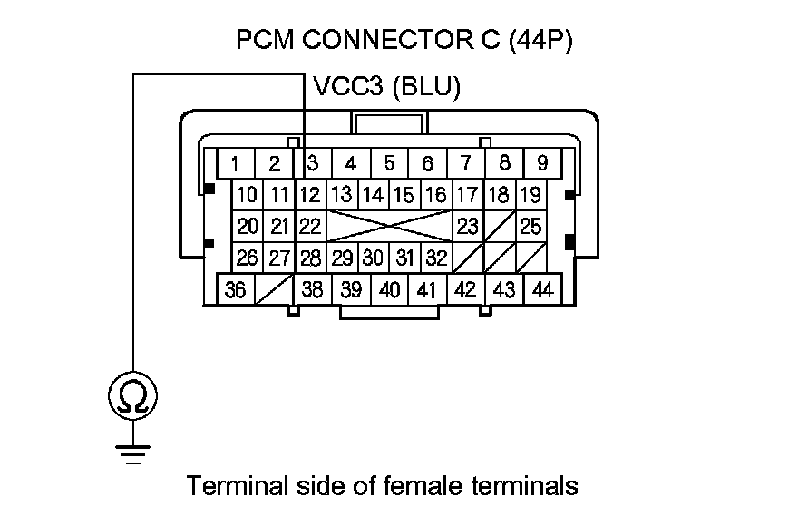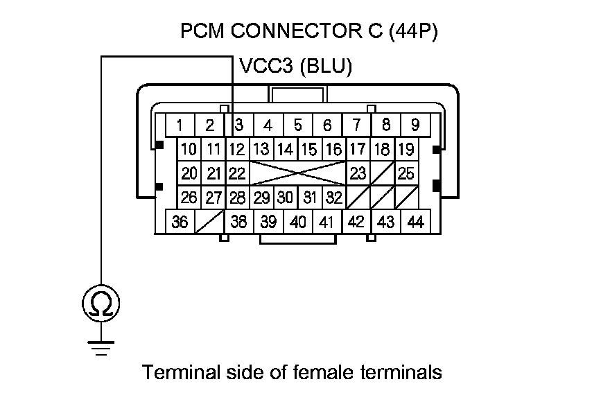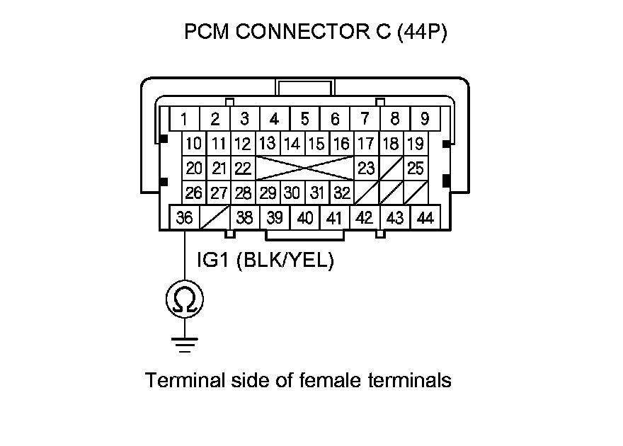 48. Check for continuity between PCM connector terminal C36 and body ground.