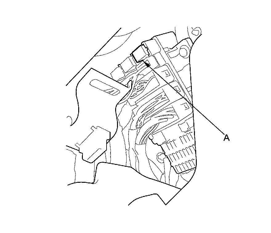 49. Remove the driver's dashboard undercover Driver's Dashboard Undercover Removal/Installation, then remove PGM-FI main relay 2 (FUEL PUMP) (A) from the under-dash fuse/ relay box.
