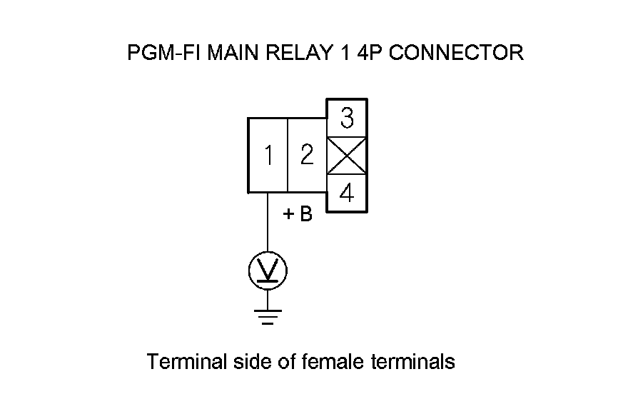 58. Measure the voltage between PGM-FI main relay 1 4P connector terminal No. 3 and body ground.