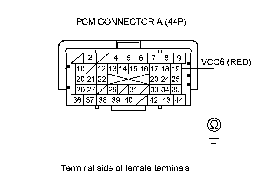 55. Measure the voltage between PCM connector terminal A6 and body ground.