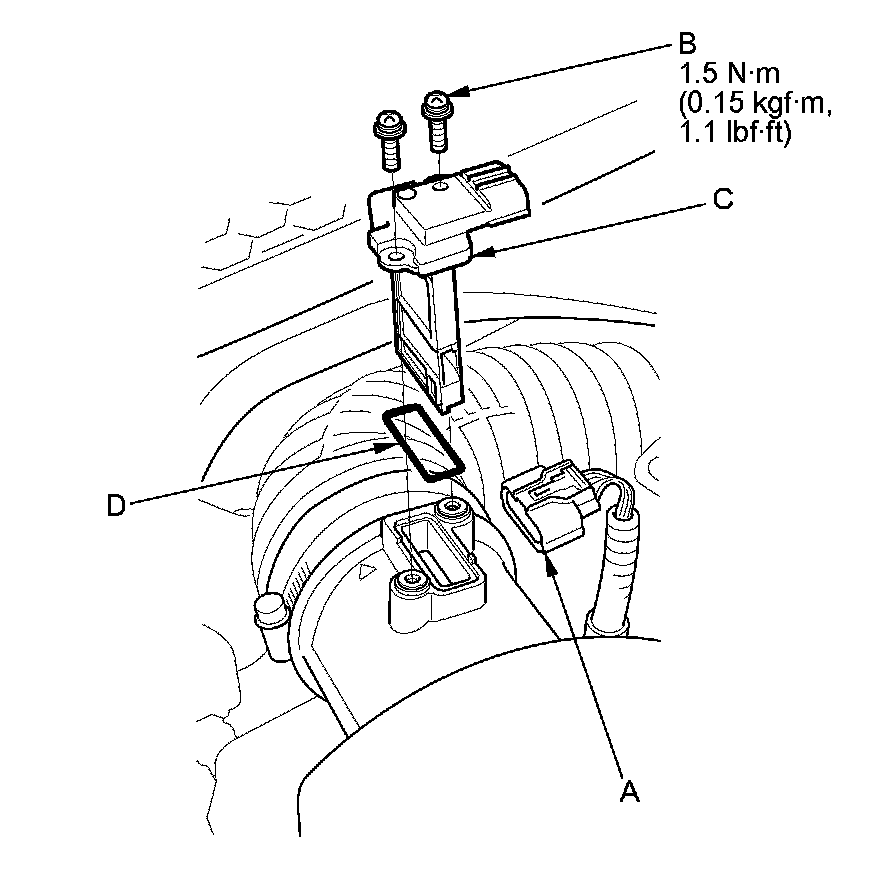 3. Remove the MAF sensor/IAT sensor 1 (C).