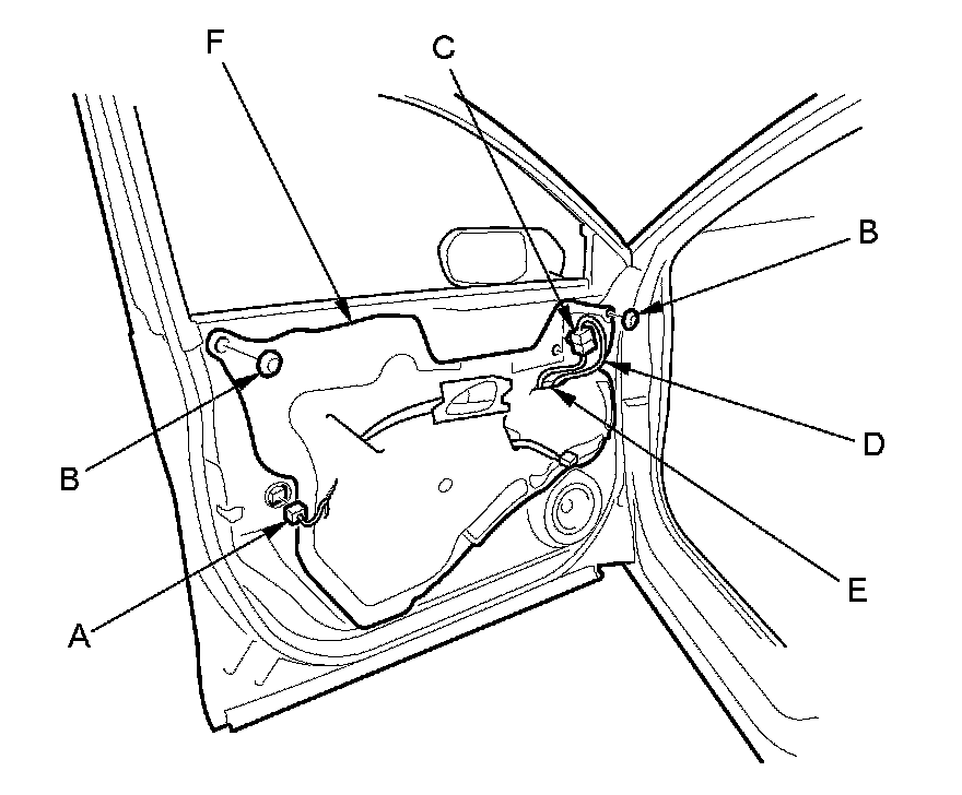 1. Remove the door panel Front Door Panel Removal/Installation.