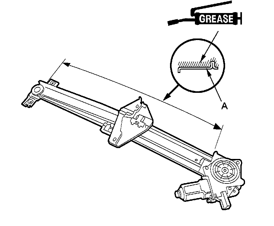 7. Apply multipurpose grease to the sliding surfaces of the regulator (A) where shown.