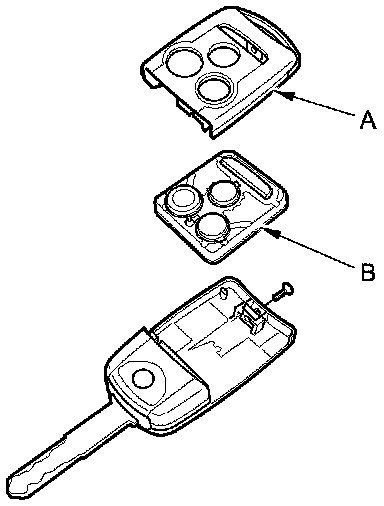4. Replace the transmitter battery (A) with a new one, and try to lock and unlock the doors with the transmitter by pressing the lock or unlock button at least 10 times.