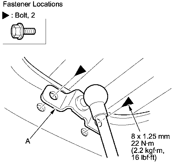 5. Fasten the pivot bracket (A) on the tailgate.