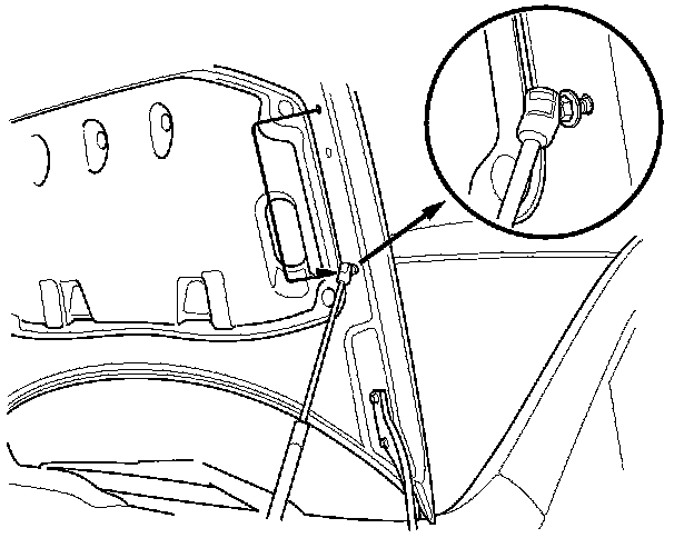 1. Disconnect the support struts from both sides of the pivot ball (bolted to the hood). Secure the hood in a vertical position. Install the left side pivot ball into the lower threaded hole.