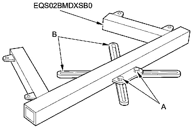 58. Loosen the four bolts (A) holding the adjustable arms (B) of the front subframe adapter (EQS02BMDXSBO) to its center plate.