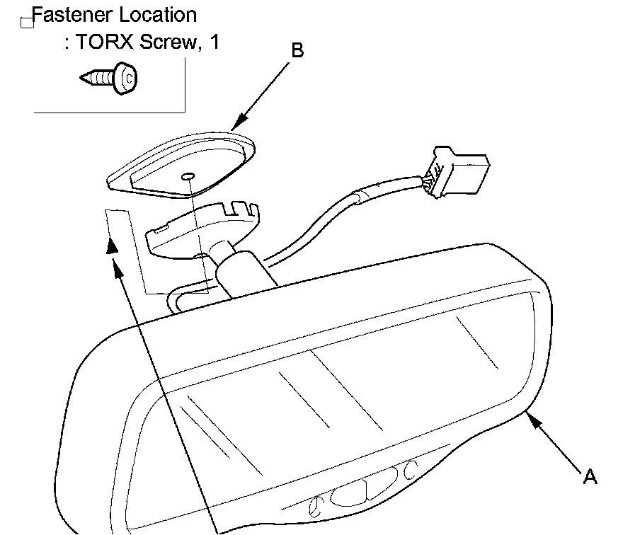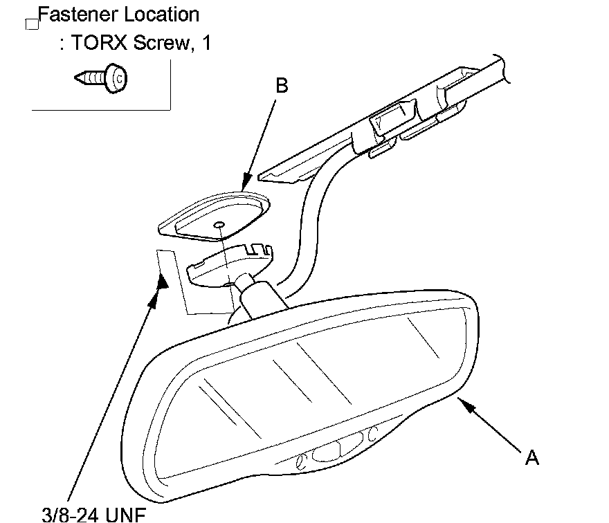 4. Loosen the TORX screw with a TORX T20 bit, then slide the rearview mirror (A) rearward and off the mount (B).