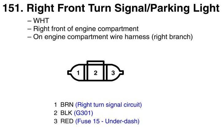 View 151 - Right Front Turn Signal/Parking Light Connector View