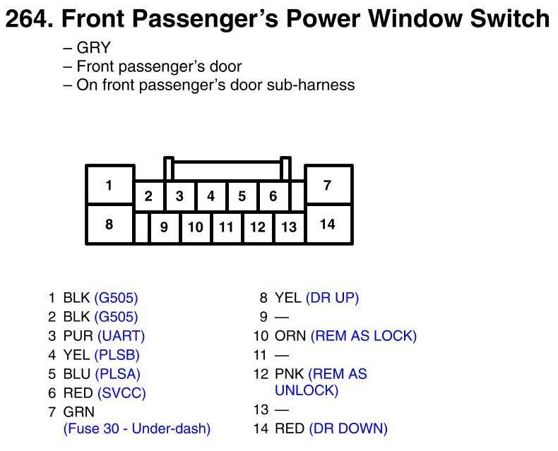 View 264 - Front Passenger's Power Window Switch Connector View