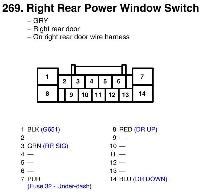 View 269 - Right Rear Power Window Switch Connector View