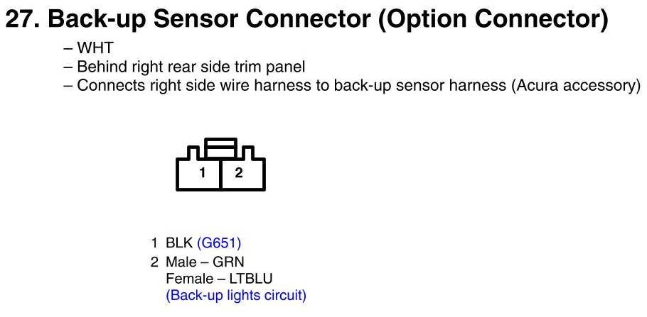 View 27 - Back-up Sensor Connector Connector View (Option Connector)