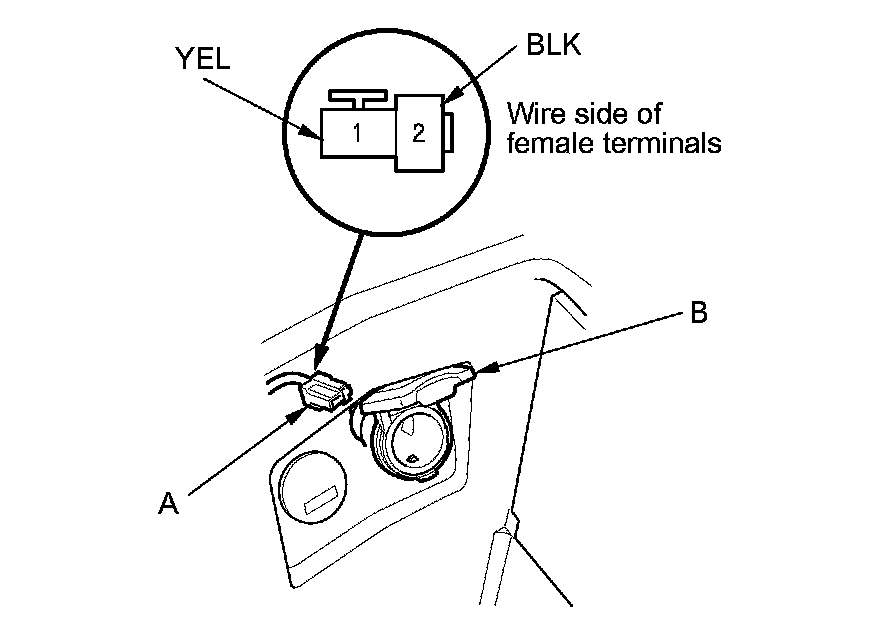 2. Disconnect the 2P connector (A) from the console accessory power socket (B).