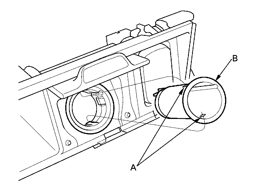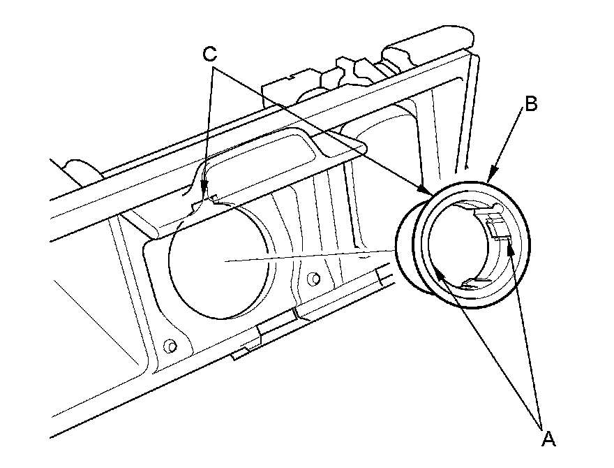 8. Gently depress the tabs (A), then remove the housing (B) from the panel. Note the location of the indexing tabs (C).