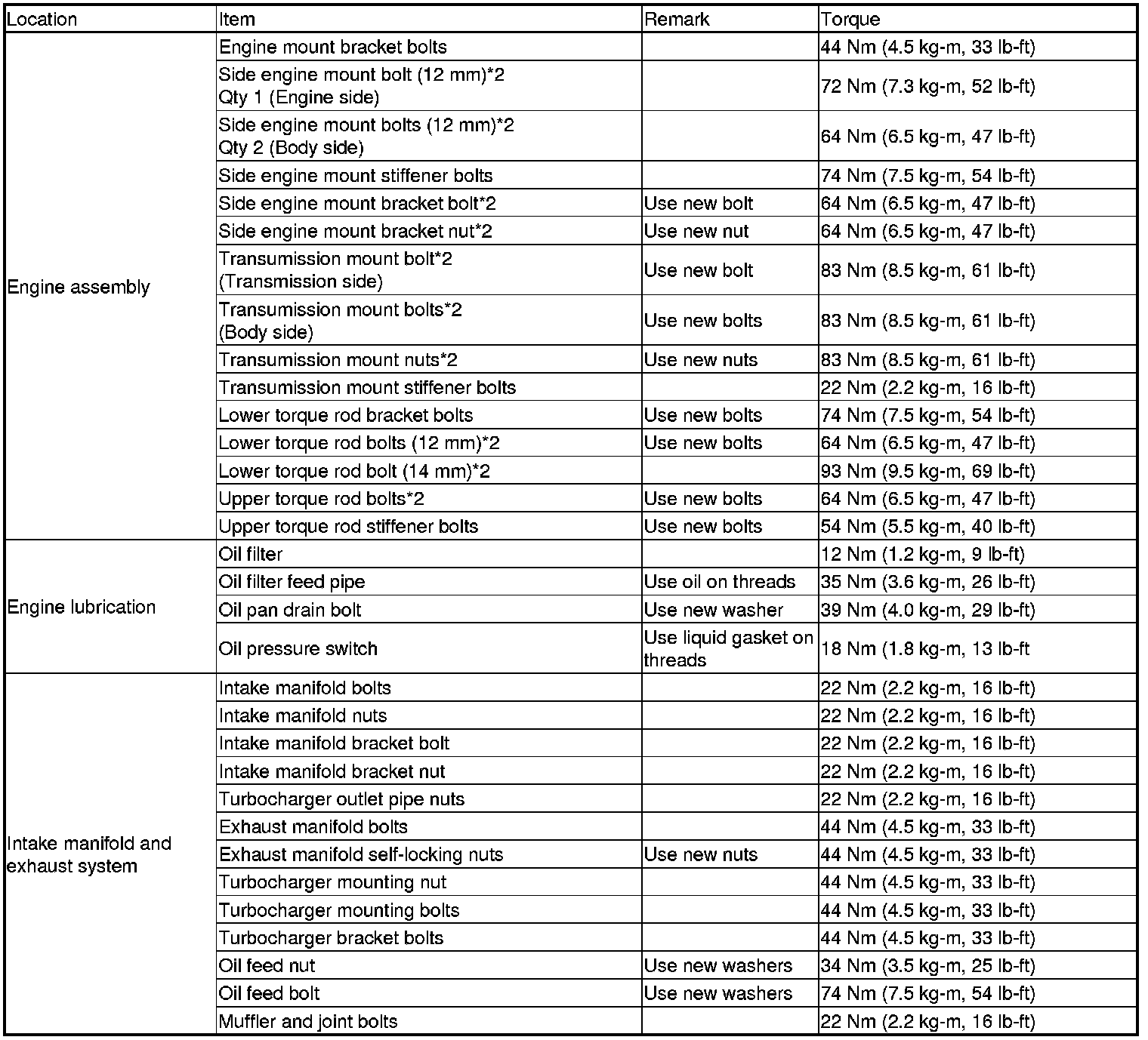 Refer to the Data for the bolts/nuts not indicated here.
