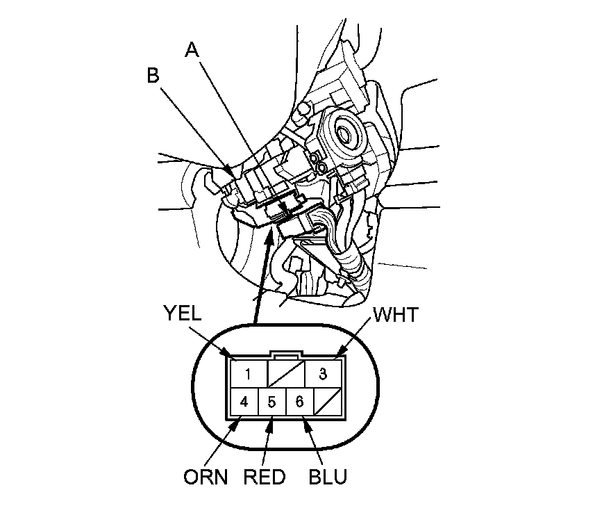3. Disconnect the 7P connector (A) from the ignition switch (B).