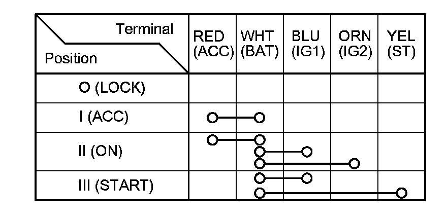 5. If the continuity is not as specified, replace the ignition switch Service and Repair.