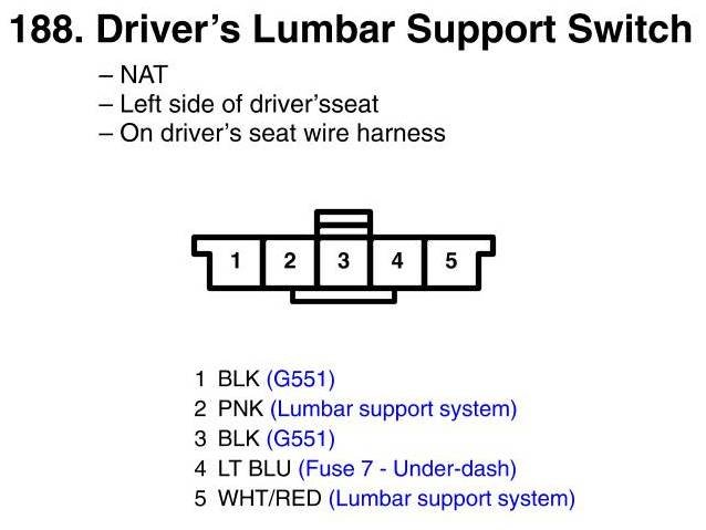 View 188 - Driver's Lumbar Support Switch Connector View