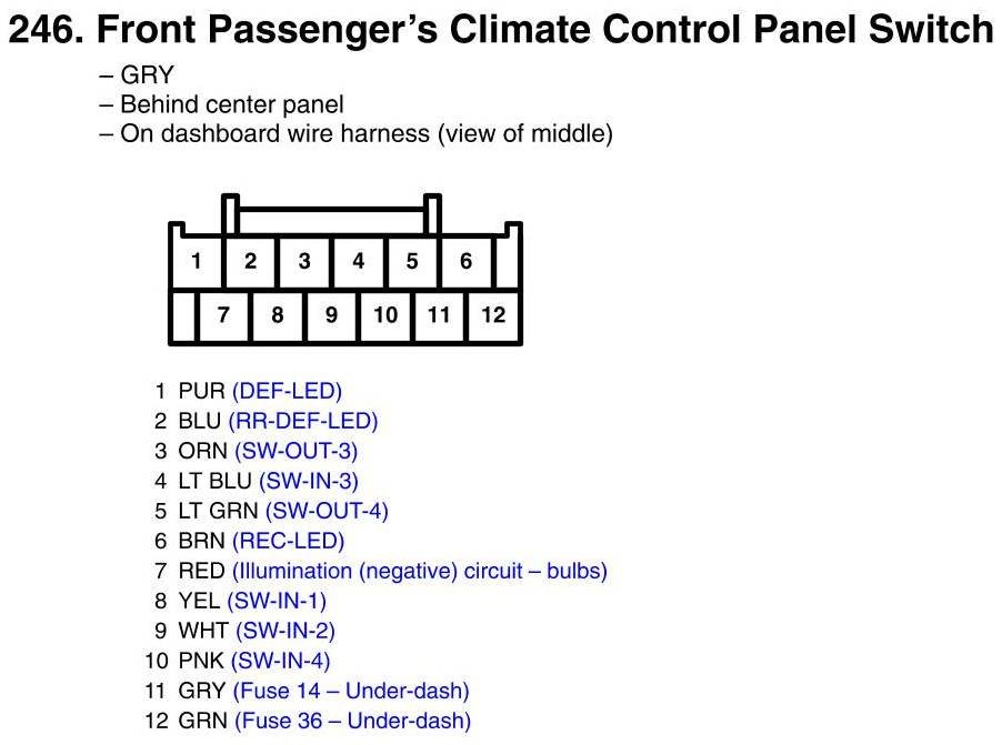 View 246 - Front Passenger's Climate Control Panel Switch Connector View