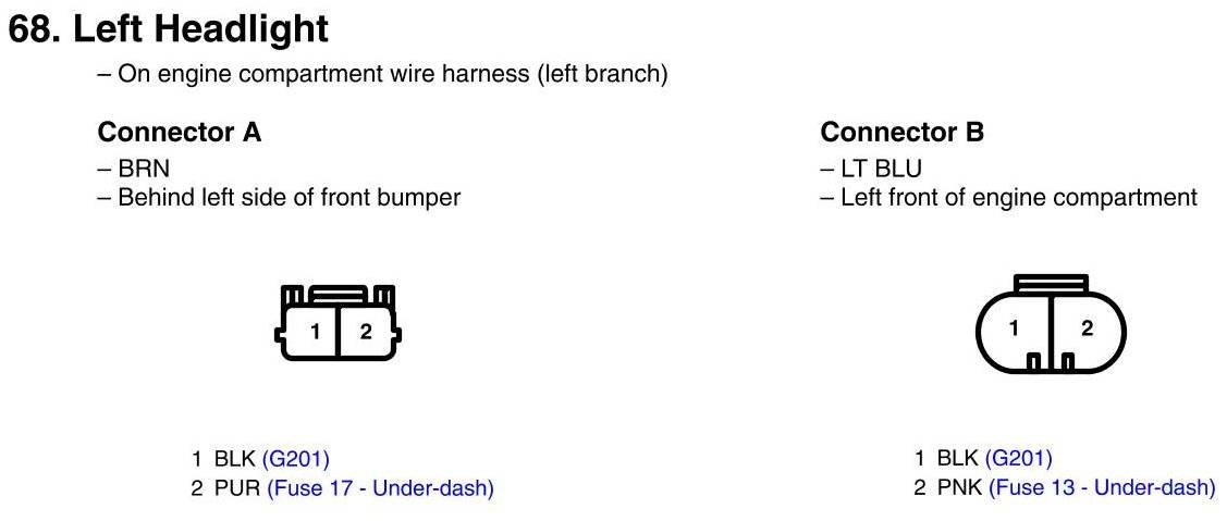 View 68 - Left Headlight Connector View