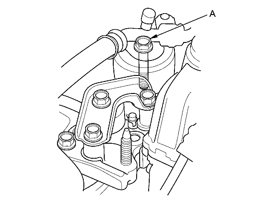 5. Loosen the upper torque rod mounting bolt (A).