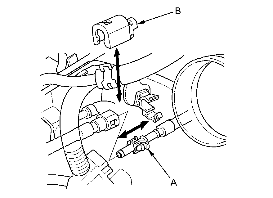 34. Connect the ATF cooler hoses (A), and secure the hoses with the clips (B) Service and Repair.