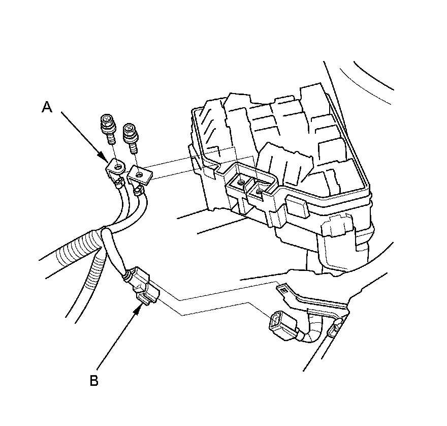 48. Install the cables (A) to the under-hood fuse/relay box.