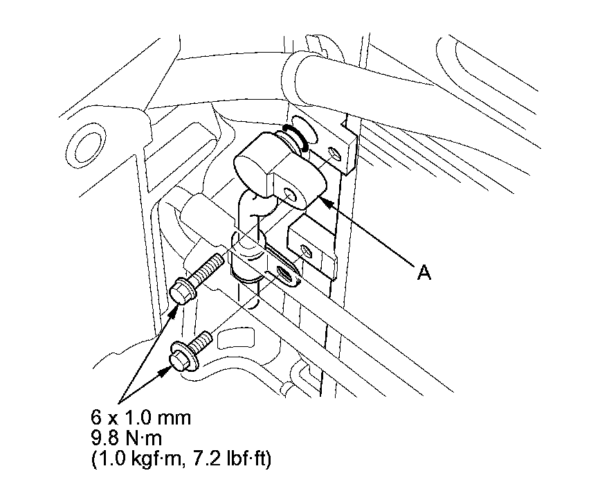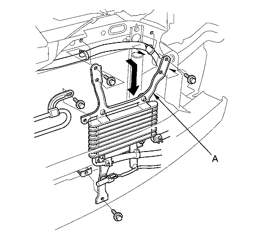 6. Remove the bolts, then pull the bracket (A) down slightly.