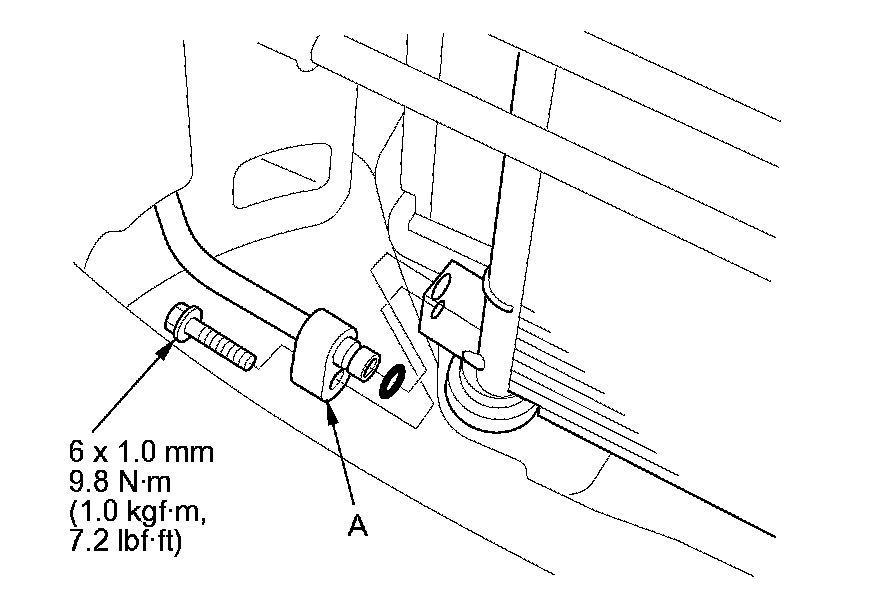 5. Remove the bolt, then disconnect the receiver line (A) from the A/C condenser.