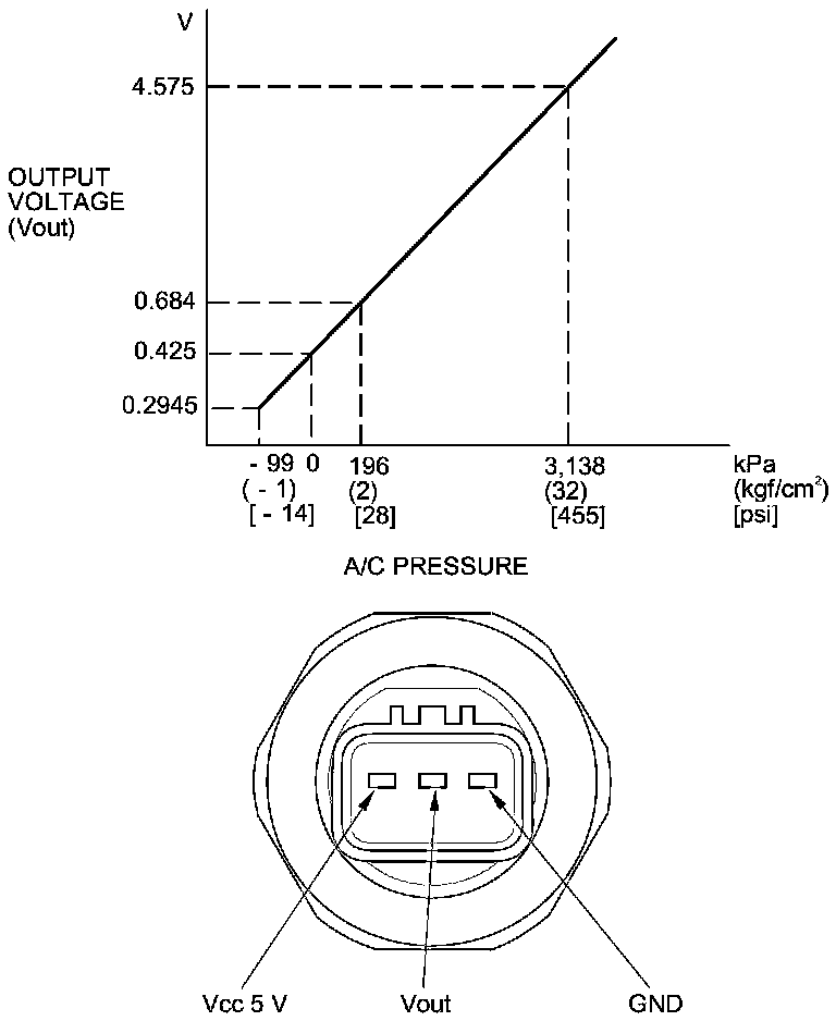 The response of the A/C pressure sensor is shown in the graph.