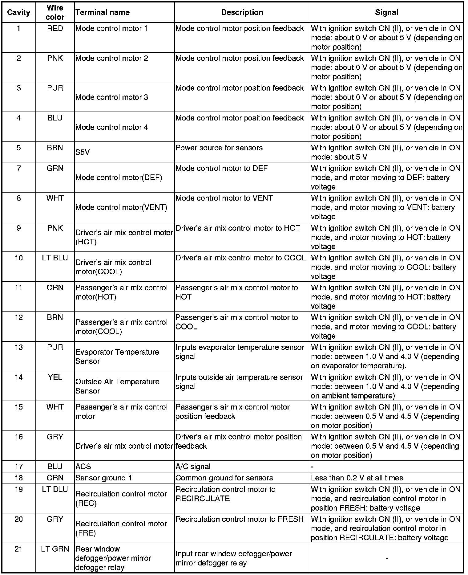 Climate Control Unit Inputs and Outputs