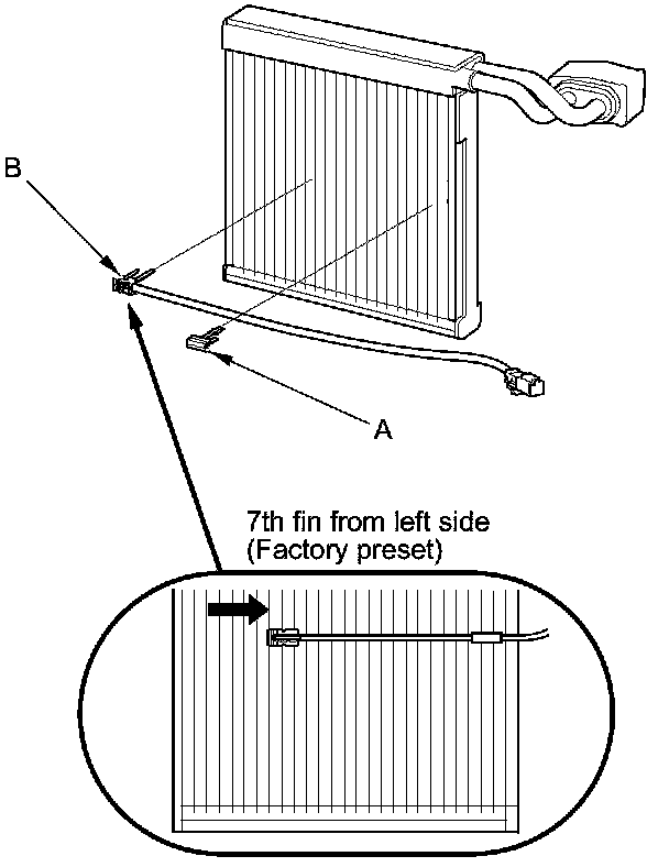 NOTE: The evaporator temperature sensor is installed in the fin at the 7th fin from the left side by the factory preset.