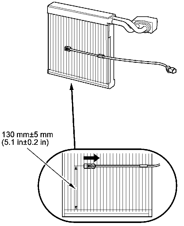 9. When the evaporator temperature sensor is reinstalled, set the evaporator temperature sensor in the eight fin from the left side (one fin over from the previous position).