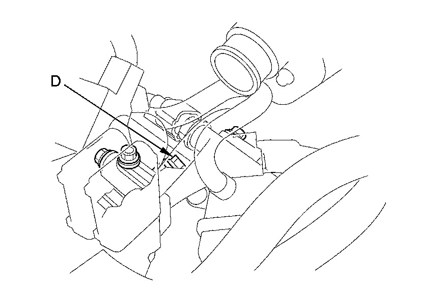 15. Upshift to 2nd gear by pressing the paddle shifter + (upshift switch), and measure the 2nd clutch pressure at the 2nd clutch pressure inspection port (D) while holding the engine speed at 2,000 rpm.