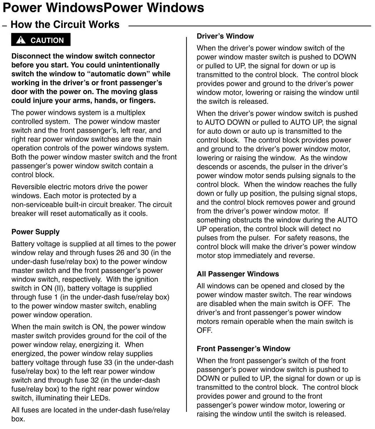 How The Power Windows Circuit Works