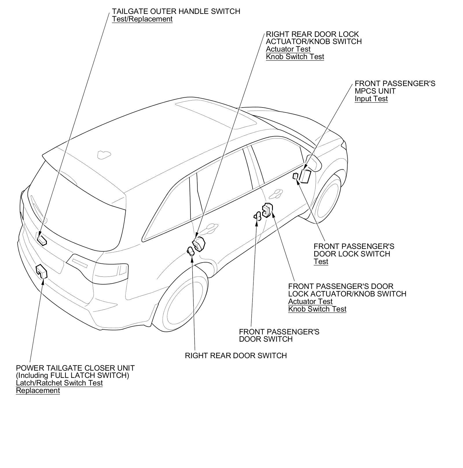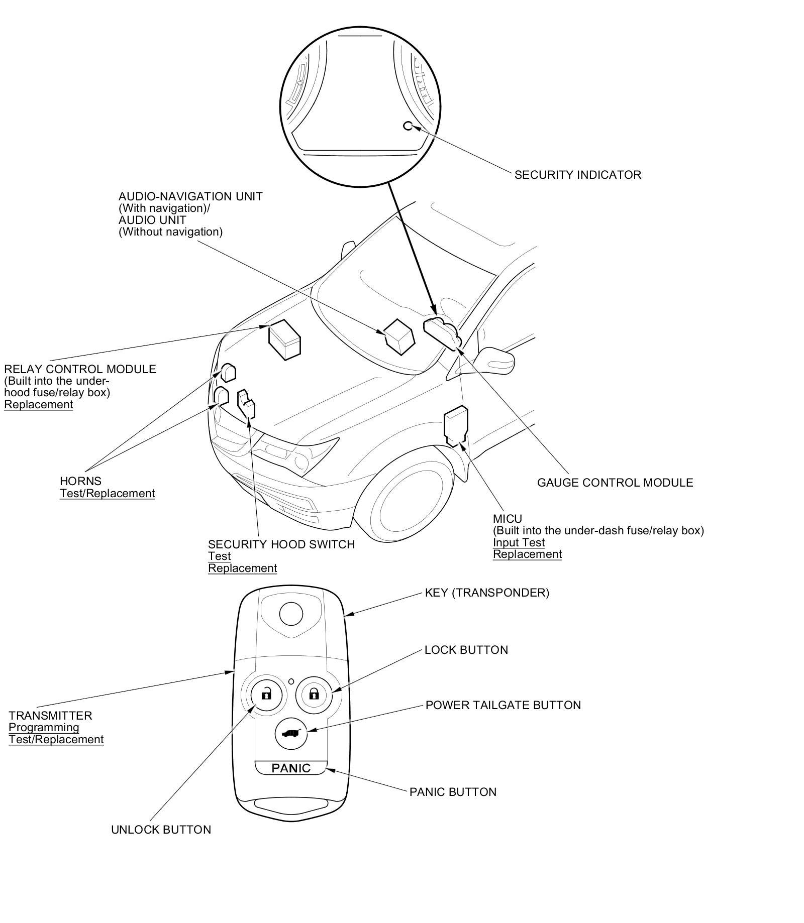 Keyless/Power Door Locks/Security System Component Location Index