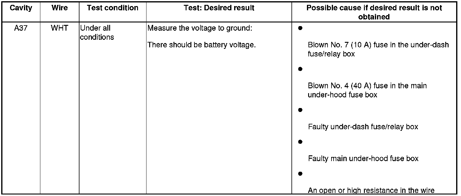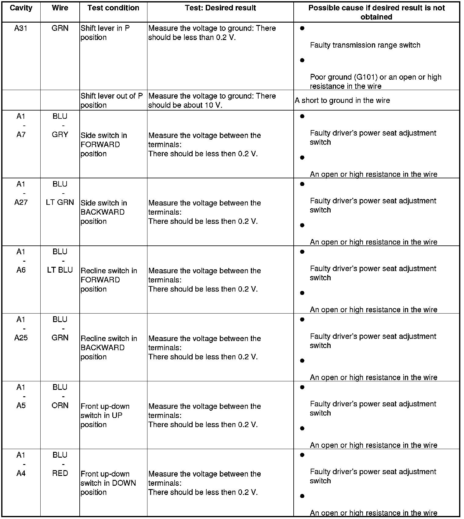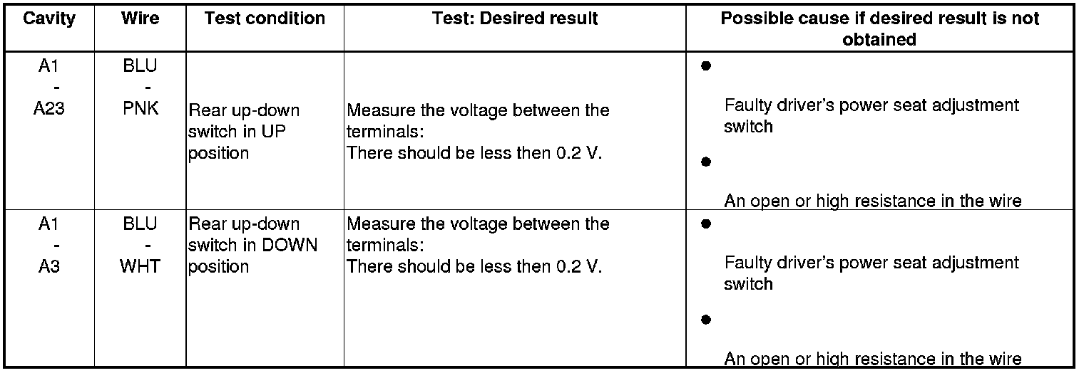 Power Seat Control Unit Input Test