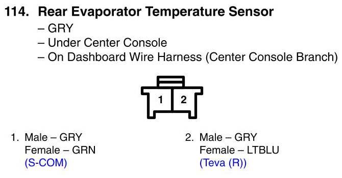 View 114 - Rear Evaporator Temperature Sensor Connector View