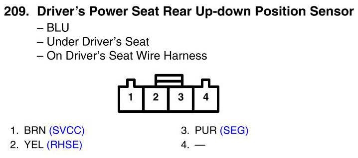 View 209 - Driver's Power Seat Rear Up-Down Position Sensor Connector View