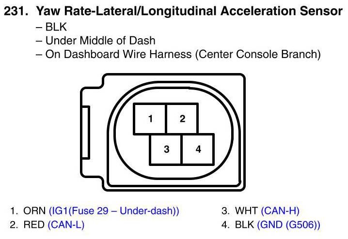 View 231 - Yaw Rate-Lateral/Longitudinal Acceleration Sensor Connector View
