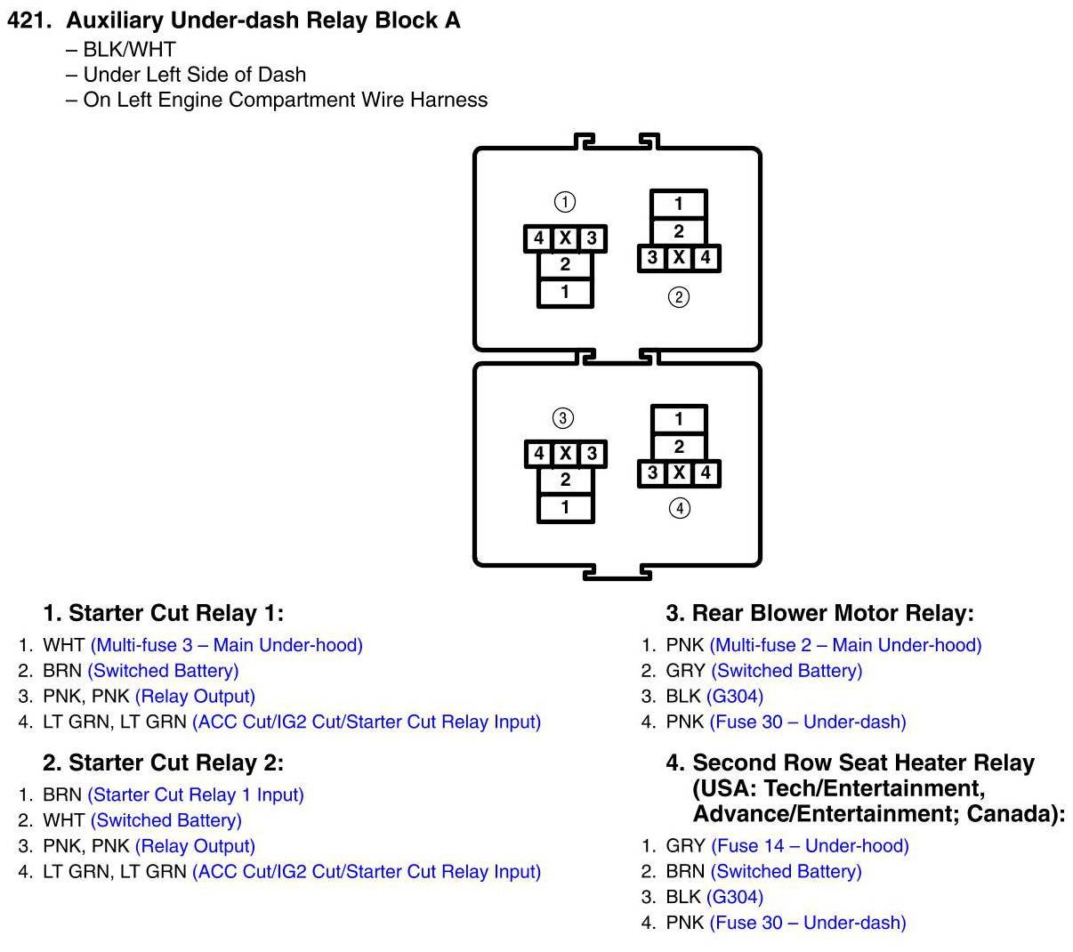 View 421 - Auxiliary Under-dash Relay Block A Connector View
