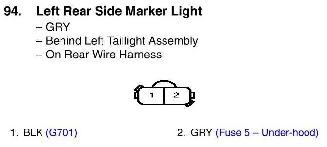 View 94 - Left Rear Side Marker Light Connector View